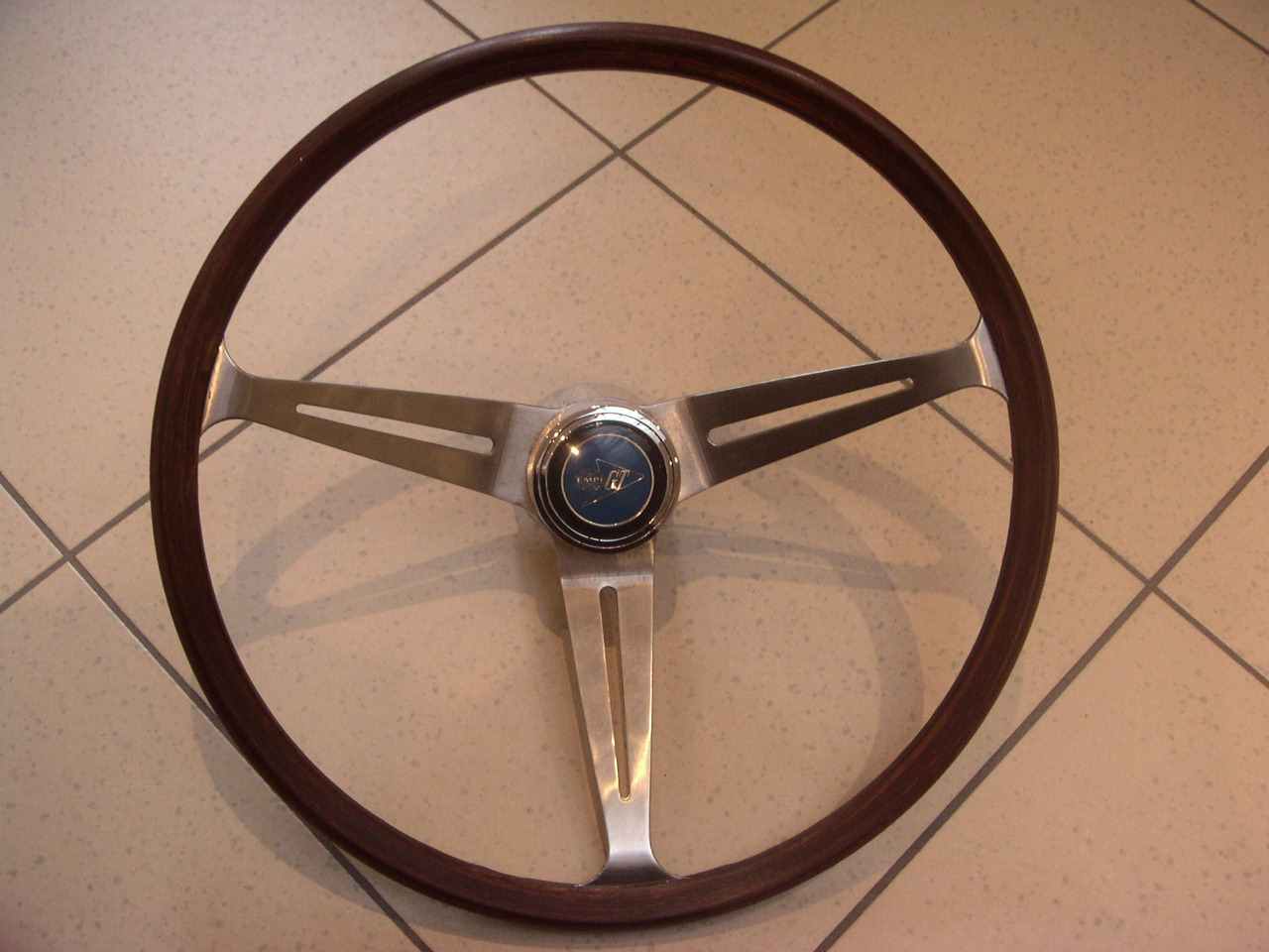 i bought this steering wheel, because i had a very good feeling about it, it is a 15 inch original EMPI GTV steering wheel, as i like it, with the original california sunshine patina on it, and god-forbid !, not too much cleaned and/or polished ! however it has no cracks and or damage, and will bolt inside your car like a dream. also the horn button is in good condition, however verrry slightly sun-used… that’s the way i like it !