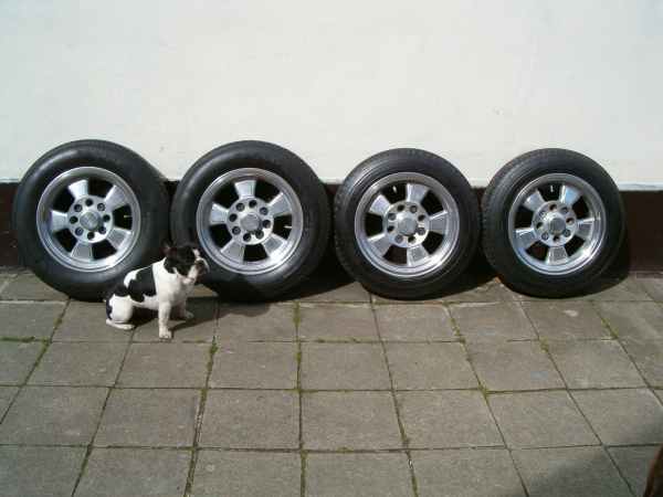 check out these funky four lug riviera wheels that are for sale by party animal frank aka beetleboy of the flatline lowriders. it is a polished set of rivieras that would look good on any type three and/or bug, KG, etc etc… of course … the wheels come with FIRESTONE 165 tires in the rear and FIRESTONE 145 tires in the front …. very good for that callook stance on your type three and/or your karmann ghia… (where the weels really need to be tucked under the fenders in the rear, hence the slightly smaller rear tire than the classic 195 or beefy 205…)