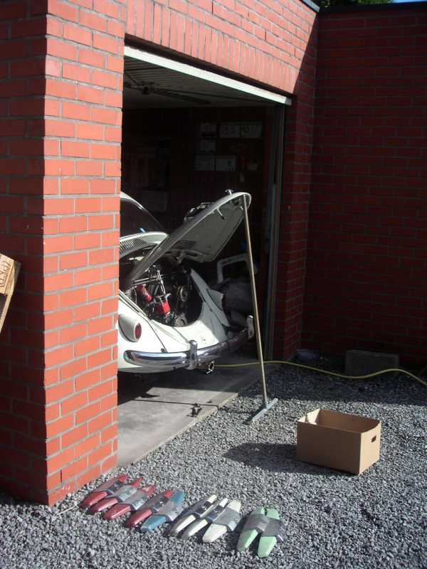 i got my car back from steves vw shop yesterday, and after some final tweeking i got home with a new “freddy gearbox” (it is a rancho pro street gearbox) and a shortened frontbeam…